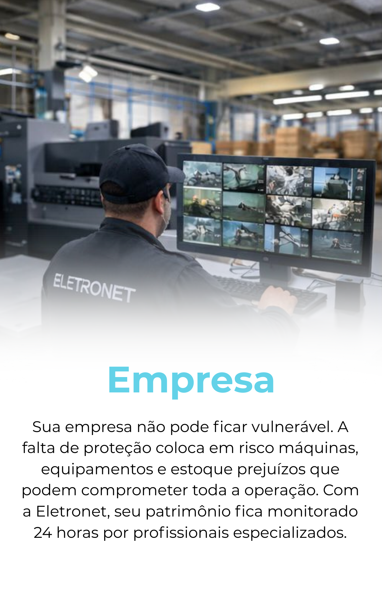O sistema de alarme da Eletronet foi projetado para identificar situações suspeitas logo nos primeiros sinais, permitindo uma atuação rápida e eficiente.